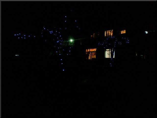 続いて、我が家のリビングから見えるリンゴの木にブルーライトを。