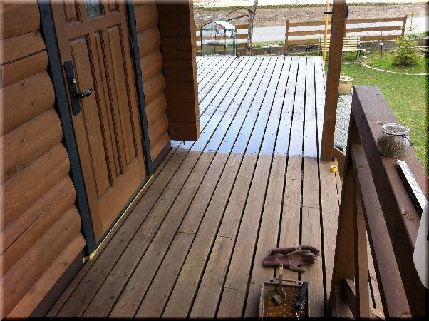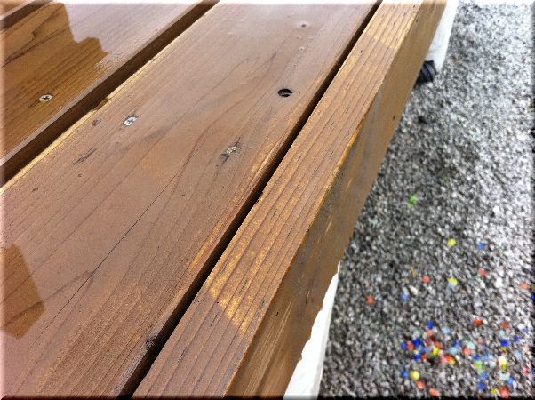デッキの撥水性がまったくありませんので、これじゃぁ、劣化が進むよなぁ...