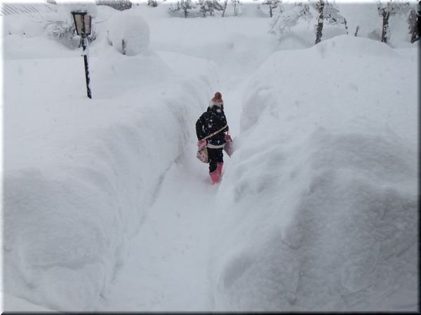 何か雪国の原風景でほほえましい写真にも見えるが、そう見る余裕のない私...