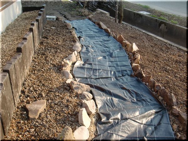 本来は、防草シートの上にもう一度砕石を敷くべきでした...