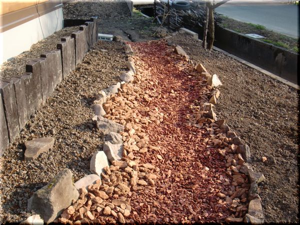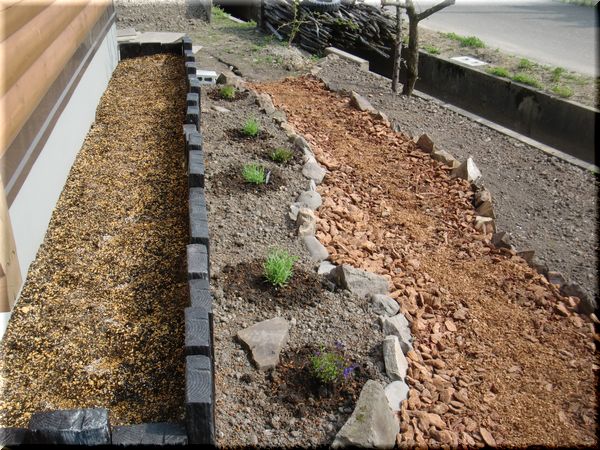まぁ、石を並べてロックガーデン風をイメージしていたので、砕石のごつごつした園路も良いのかなぁ、なんて。