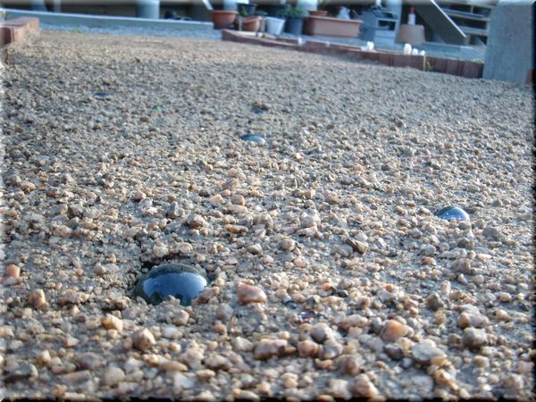 単純にアプローチとして固めるだけではなく、遊び心を入れてビー玉を埋め込みました。