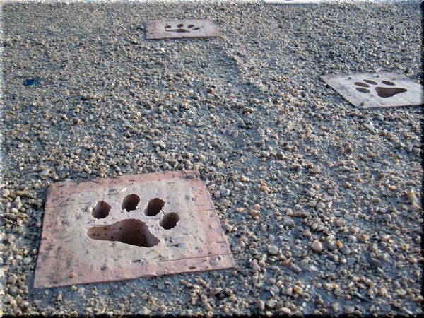 犬の足跡のレンガ。