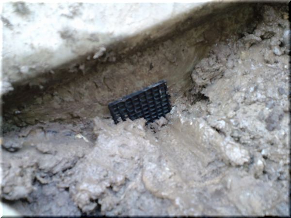 そんで、溝の排水を良くするため、古い素焼き鉢を割った破片を敷き詰めました。