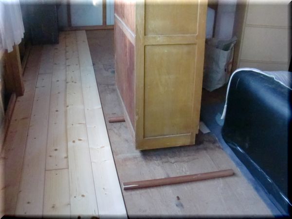 ここは、農機具小屋なので、床を張る前の合板むき出しの床でした。