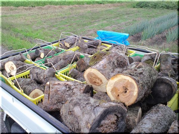 だから切った丸太はこうして軽トラに積んで、家に持ち帰り。