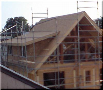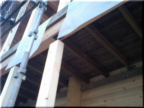 でも、先日の上棟式で登った二階部分。各作業のためにはしっかりとした足場となるベランダは重要かも。