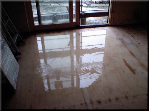 ・・・まだ床がぬれている...