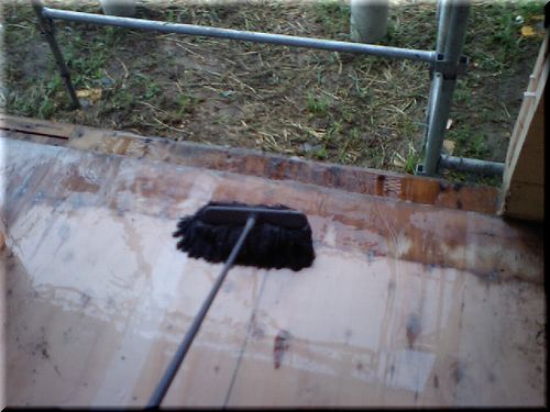 まぁ、ぬれても平気だから放置しているんだと思いますが、その室内の水たまりを見るのが、あまりに切なくって、思わずモップでかき出しちゃいました。