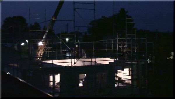 そして、日は暮れ・・・・・・ても大工さんは頑張り続けています!