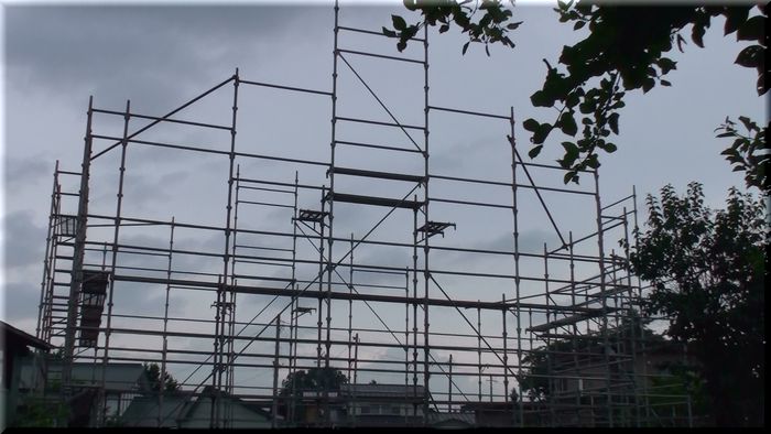 足場組んだ所なんか、普通遠くから眺めることが多いから、こんな近くで見ると、「そそり立つ」と言った感じですねぇ!