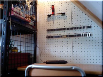 壁に有孔ボードを貼り付け、そこにマグネットシートを貼って、そこにホビールーター用のビットをセッティングぅ。