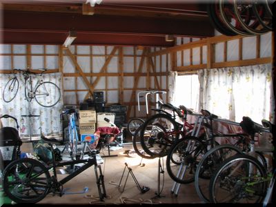 小屋の二階は窓だらけ。