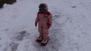 調子に乗って、子どもを抱っこしたまんま下まで滑走!