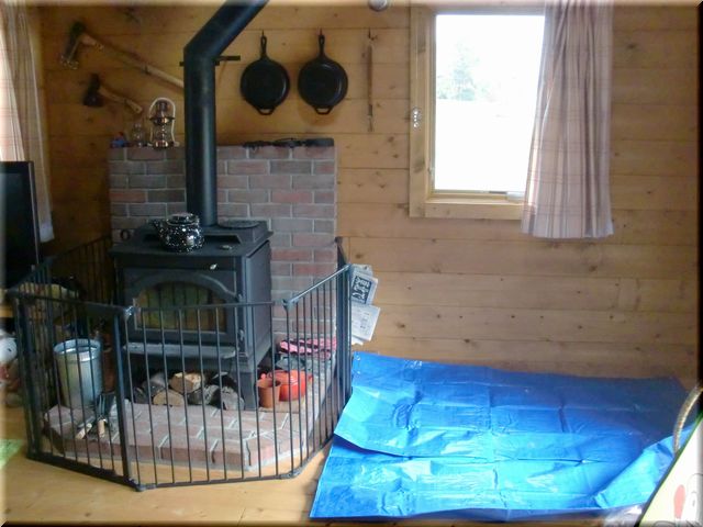 まずは小屋にフレキシブルテーブル(コンパネで作った簡易テーブル)を設置し、イスを並べたらできあがり!