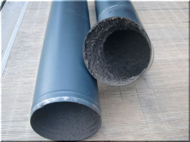あまりの煤の量に、煙突を外しただけで、バラバラバラっと床に煤が落ちてしまいました...