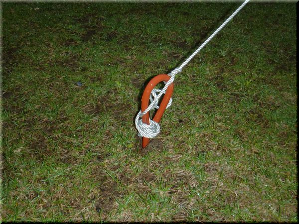 そのヒモをくくりつけた杭は、今年は芝生中央へ。