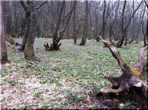 カタクリとの競演?いえ、すみ分けで、湿地から離れると一気にカタクリゾーンが広がります。