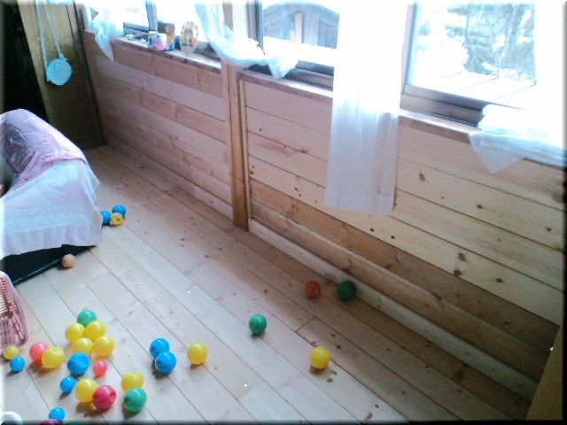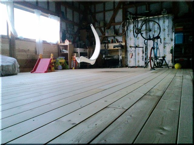 とりあえず、床張った部分の壁にも下部だけ板を張りました。