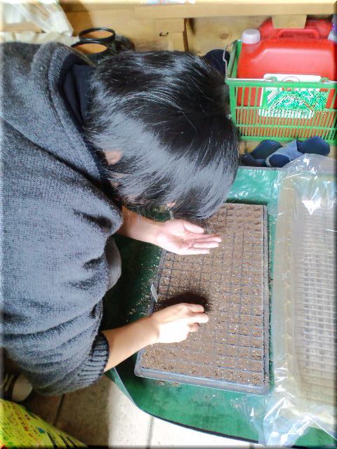 何度も言いますが、まだまだ寒いので、播いた播種床は少しでも温かいミニビニル温室へ。