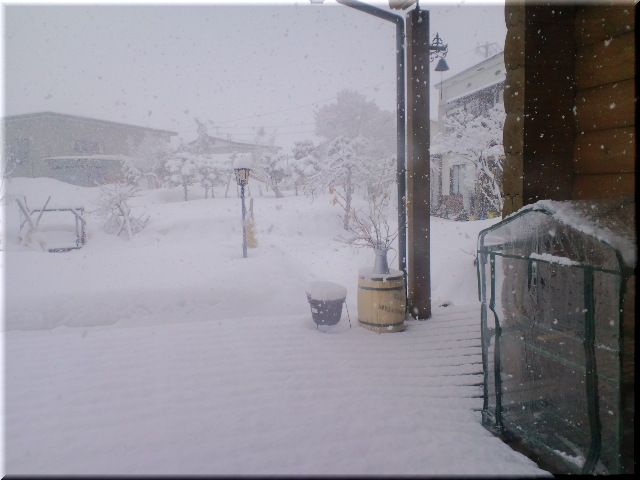 しばらく晴天(曇りがほとんどですが)が多かったのに、今日起きると大雪。