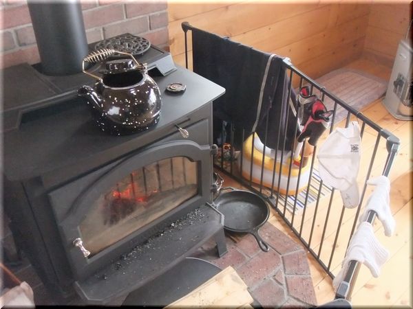 濡れたズボンを薪ストーブで乾燥。