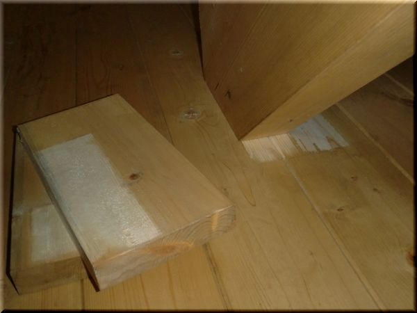 さて、セトリングが順調に進んでいる証拠、階段下の羽目板を外すときがきました。