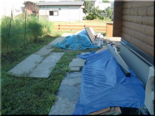 裏庭の西側には、家を建てたときの余った木材が積んであります。