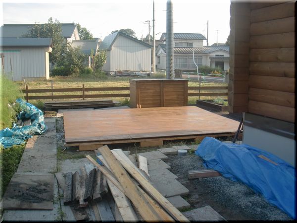 その上に、余った木材のうちの床板を敷き詰めました。