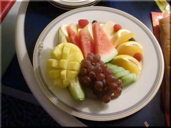 取り替えてもらおうかとフロントに連絡すると、コック長も一緒に部屋に来て、最初に購入したフルーツの数倍あるフルーツ盛り合わせが届きました!