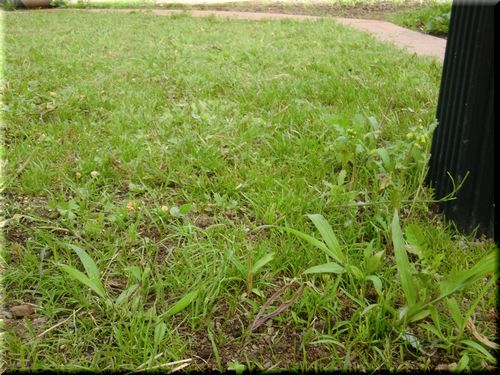 まぁ、ここまで低く刈らなければいい話なんですが、あまりにも雑草が憎くって、根こそぎ!っと思ったらこんな状態に...