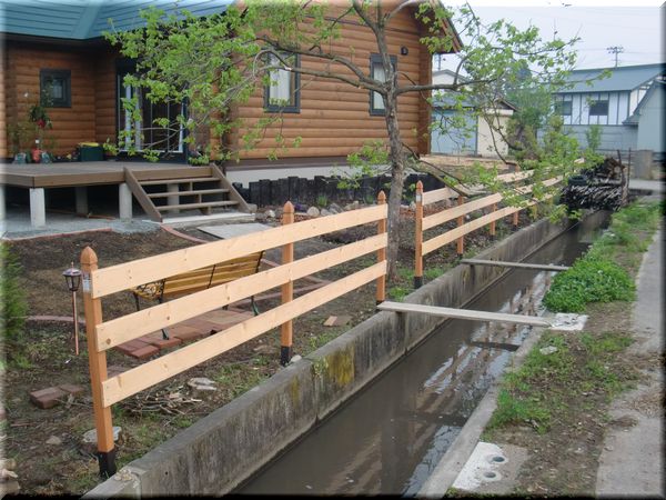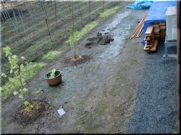 奥の側溝沿いには先日作った塀があり、いつかはモッコウバラで彩られる予定。
