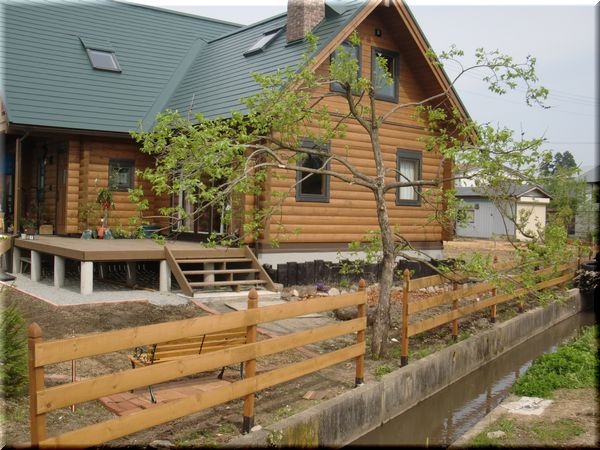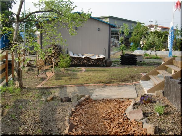 今は、枕木を積んでいる場所も、簡単なテラスになっていて、シンボルツリーのモクレンの木の下で憩える日を遠くに待っています。