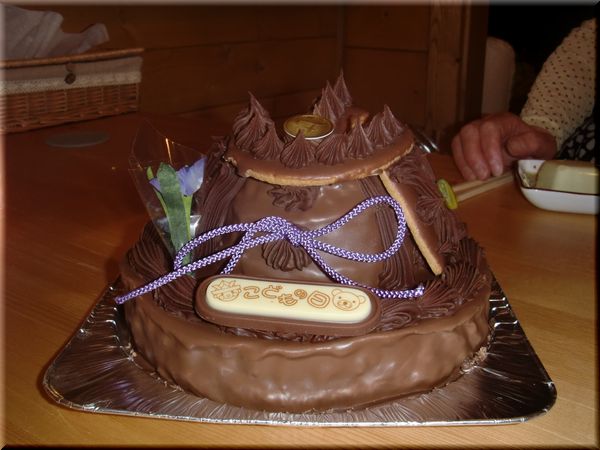 兜の形をしたケーキでお祝いをしました!