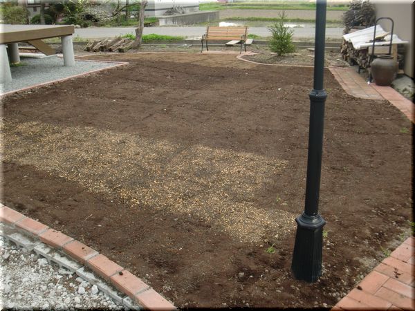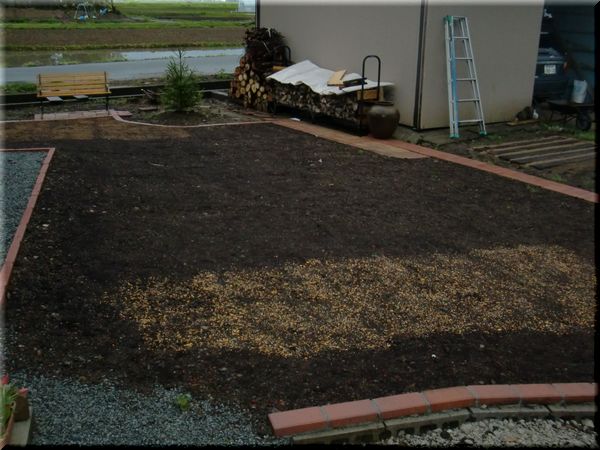 ついに、芝生ゾーン(予定地)に芝生のタネを播きました。