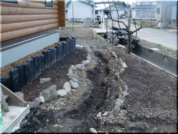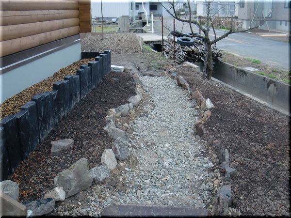 最後は、その溝に砕石を詰めて、とりあえず終了。