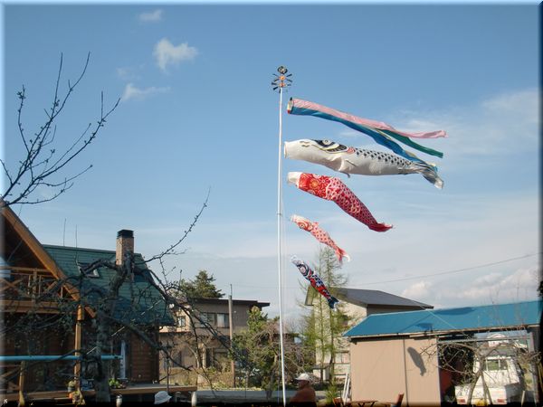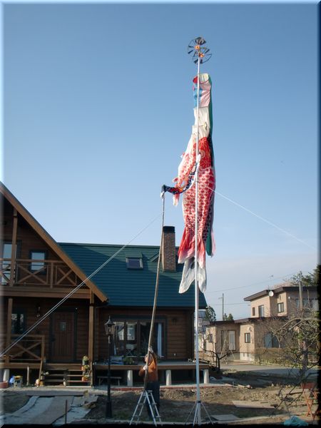 しかし、かみさんの実家からポールと新鮮・・・じゃなくて、新品の鯉のぼりを一匹買っていただき、数十年眠っていた過去の鯉のぼりとともに揚げることにしました!