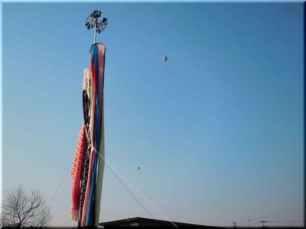 今日はすごい強風でポールが撓むし、鯉はばたばた...
