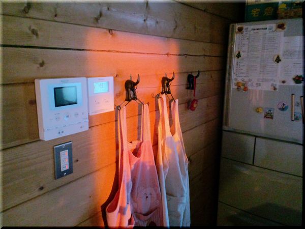 その照明に照らされ、キッチンのかみさんのエプロンがライトアップ!