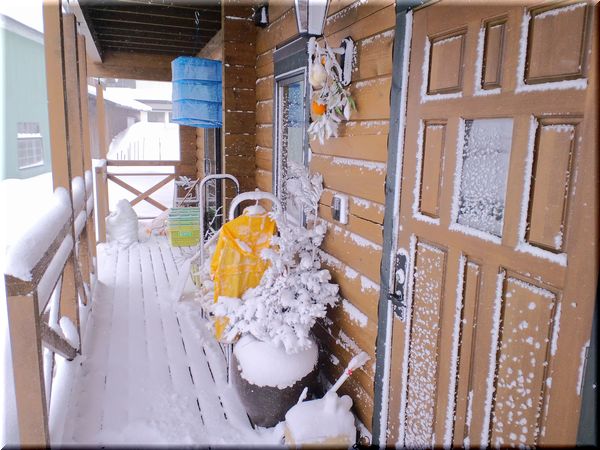 家に帰ると・・・南向きのデッキが真っ白に!