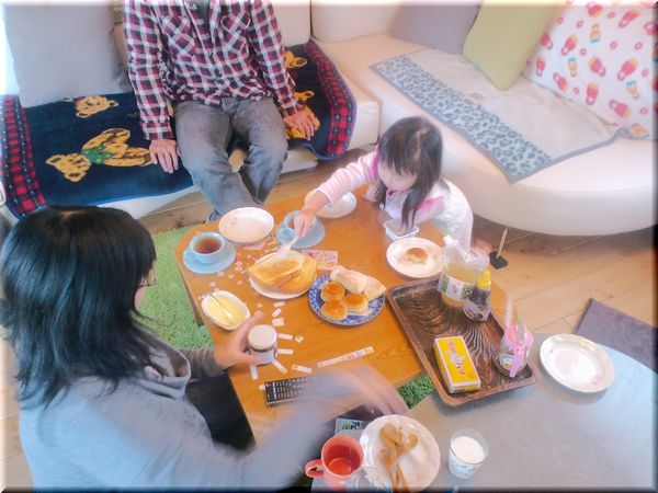 かみさんは張り切ってスコーン焼いたり、料理したり。