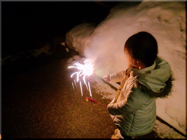 まっ、しょうがないから家の前でミニ花火大会。