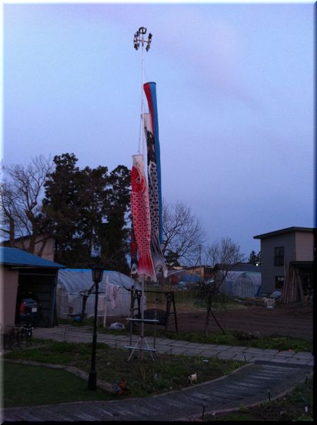 例年懸念していた、ポールを支える三点ロープですが、鯉がからまりなかなか泳いでくれない状態になりやすく、ロープを無くせないものかと考えていました。