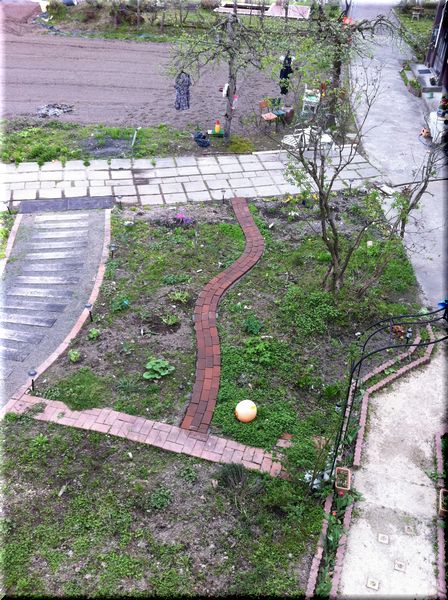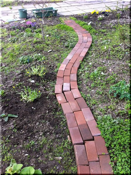 そこで、レンガで少し高くして小道をはっきりとし、歩きやすくする計画を。