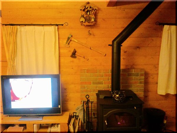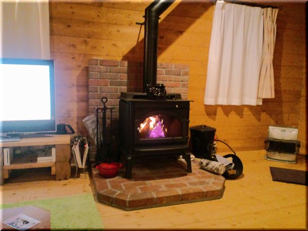 そこで、今日は早く帰ってきたかみさんが薪ストーブに火を入れているではありませんか!