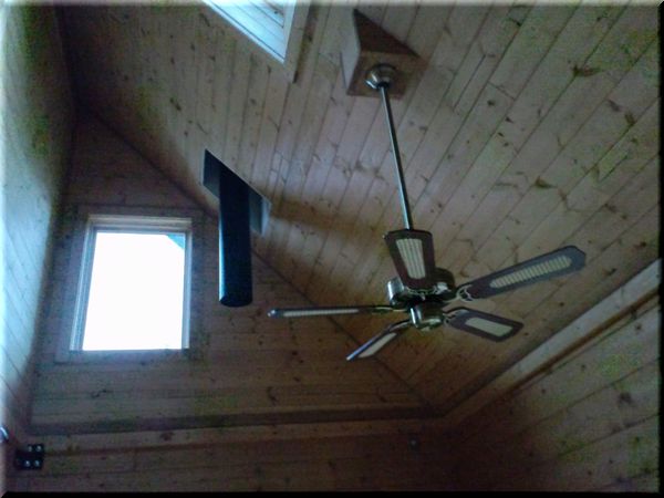 さぁ、このシーリングファンのもと、薪ストーブで暖まりながら、ジャズを聴き、酒を飲む。