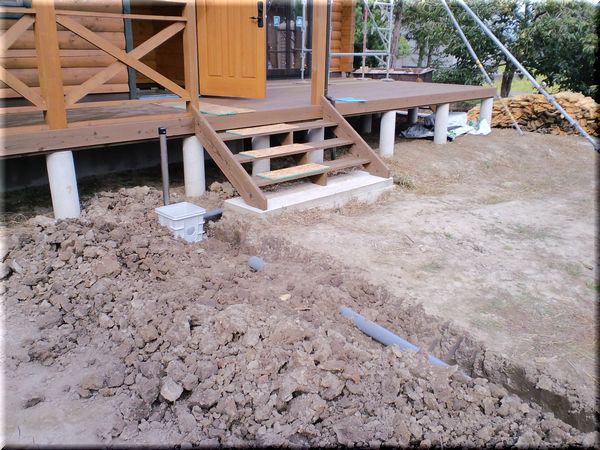 雨樋や立水栓からの排水用の管が敷かれていました。