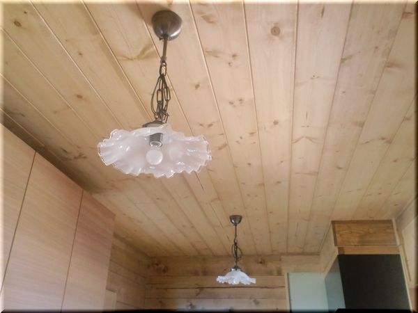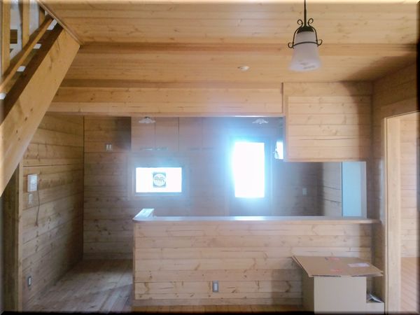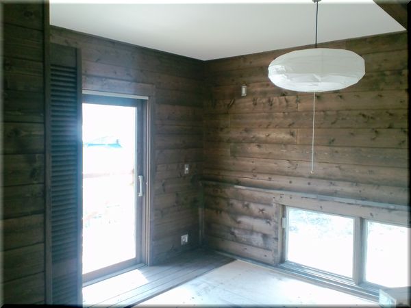 照明は・・・こだわった甲斐がありました!ログハウスの雰囲気を損なわない良い照明です!(自画自賛)
