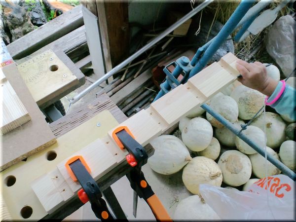 まぁ、クランプで固定しているんで、押さえる必要は無いんですが...